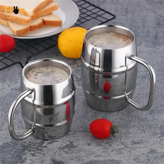304 Stainless Steel Large Capacity Draft Beer Mug, Double Wall Insulated Metal Bar Cup with Handle