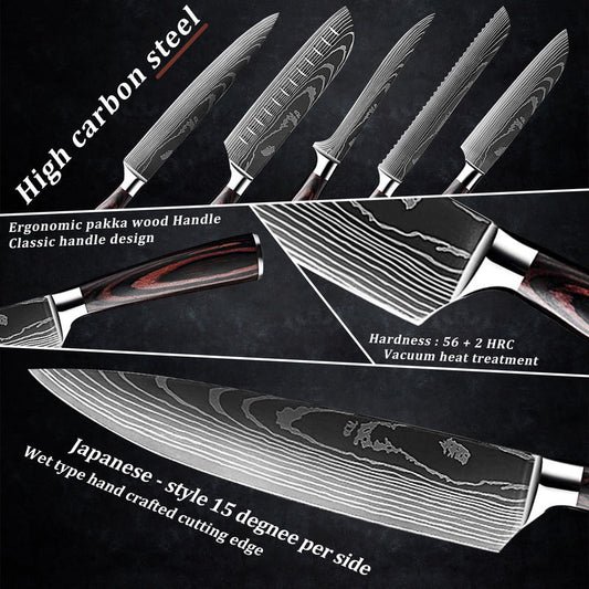 8PCS High-Carbon Stainless Steel Kitchen Knife Set, Pakwood Handle