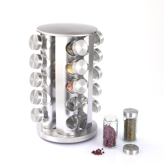 20 Jars Rotating Spice Rack with Labels - Space-saving Spice Organizer with Easy Access
