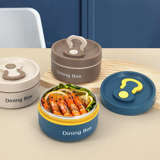 Portable 304 Stainless Steel Round Insulated Stackable Thermal Thermos Food Jar Container Bento Lunch Box for Kids with Handle