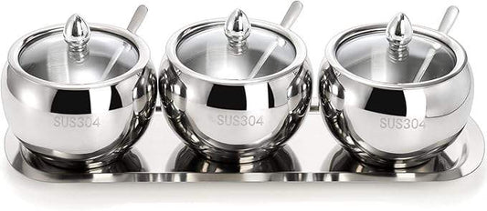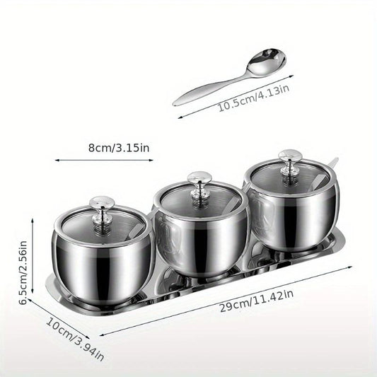 New 304 Stainless Steel Seasoning Containers Set with Lid Spoon and Tray Condiment Jar Spice Container