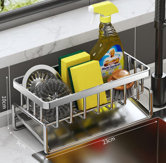Stainless 304 Steel Sink Organizer Drain Tray Countertop Kitchen & Bathroom Storage Holder Sink Sponge Caddy Rack